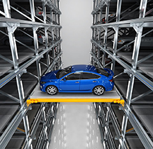 垂直升降類立體停車設備, 俗稱塔庫, 采用與電梯類似的原理與結構, 司機只需要將車停到出入
